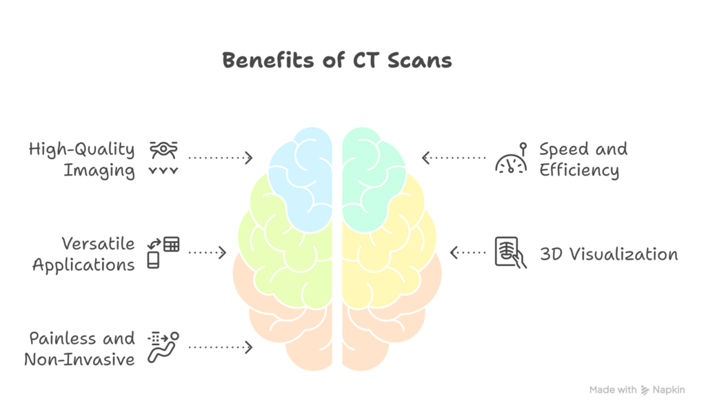 By providing high-resolution pictures of internal organs and tissues in addition to the bones, CT scans help in accurate diagnosis.